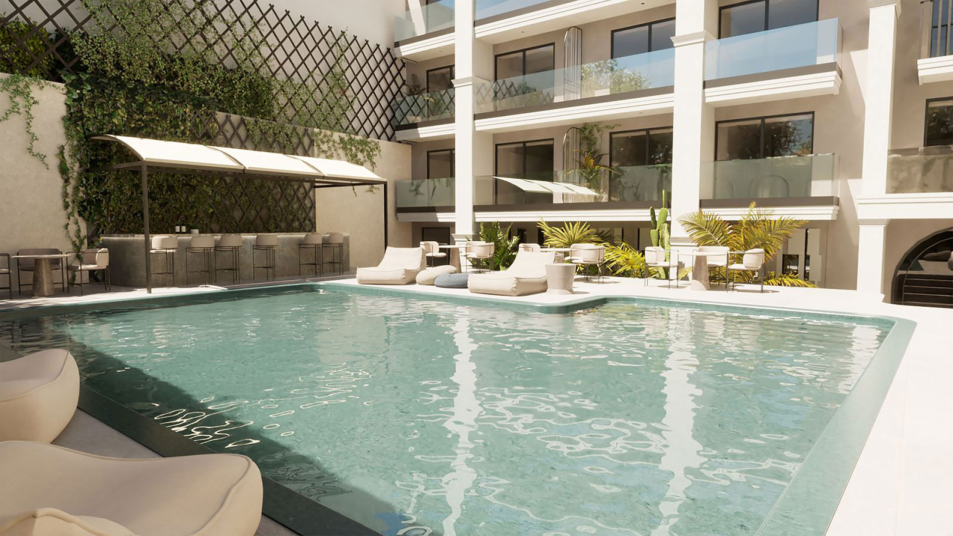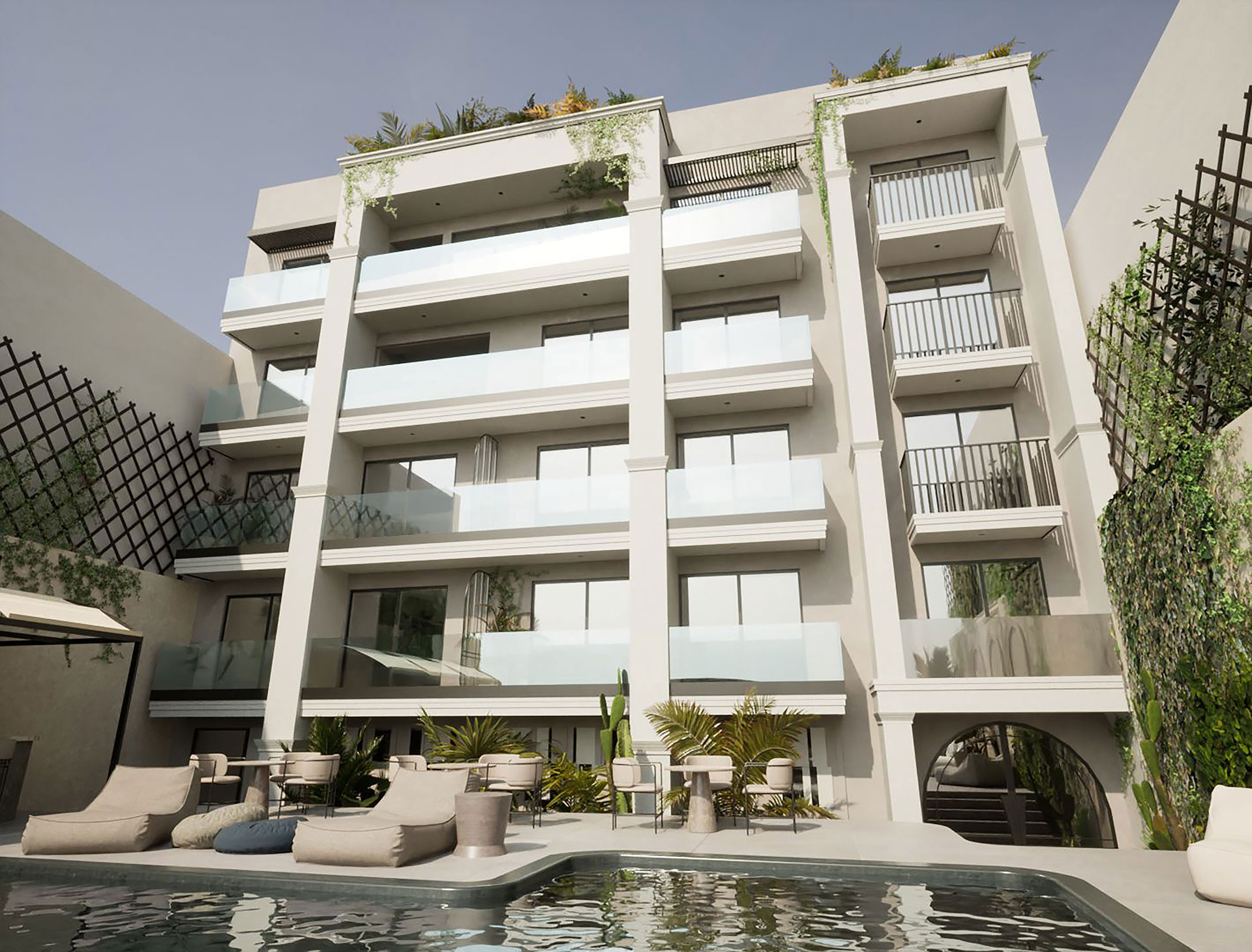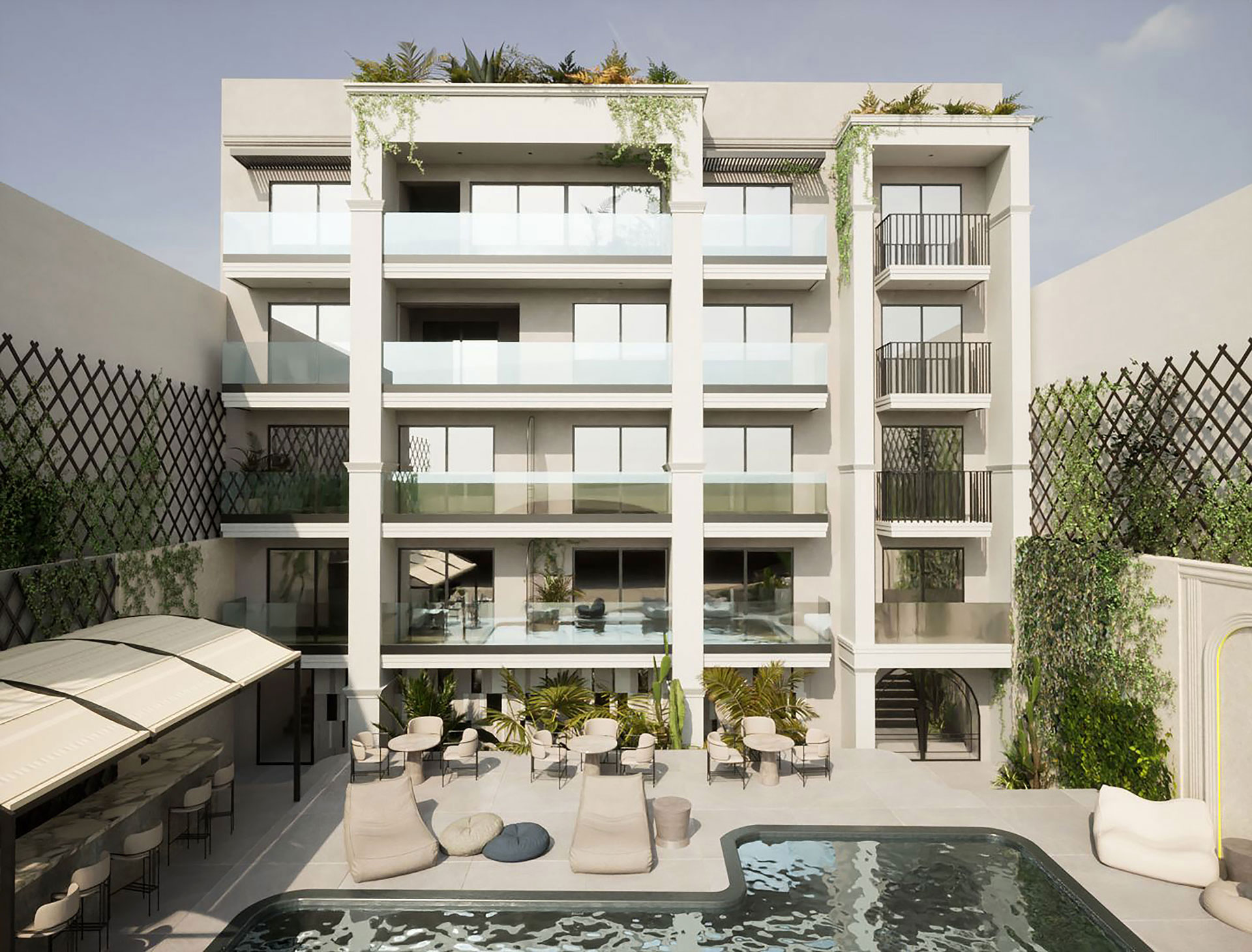 Enorme Epavli Boutique is thoughtfully designed without buffets — everything is exclusively à la carte, crafted to indulge your palate. The Main Restaurant offers an elegant à la carte breakfast paired with freshly ground espresso. Enjoy elevated moments at the Rooftop Pool Bar, where waiter service is available at your gazebo or sunbed at the touch of a button, along with a selection of international snacks. Our bartenders craft espressos, refreshing fizzes and signature cocktails — served even on your private balcony.